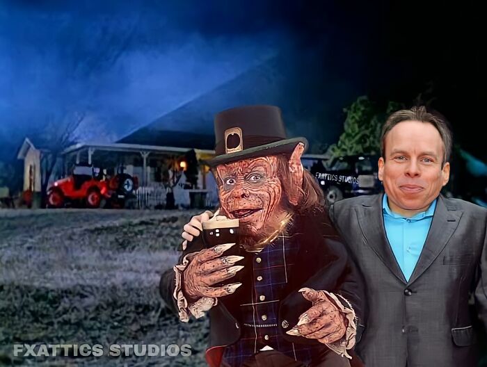 Warwick Davis y el duende Leprechaun.