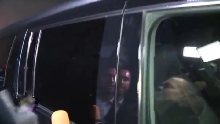 Quien si tuvo un gesto de amabilidad, fue su compañera Marina de Tavira quien se bajó de la misma camioneta y se acercó a saludar y platicar un poco con la prensa.