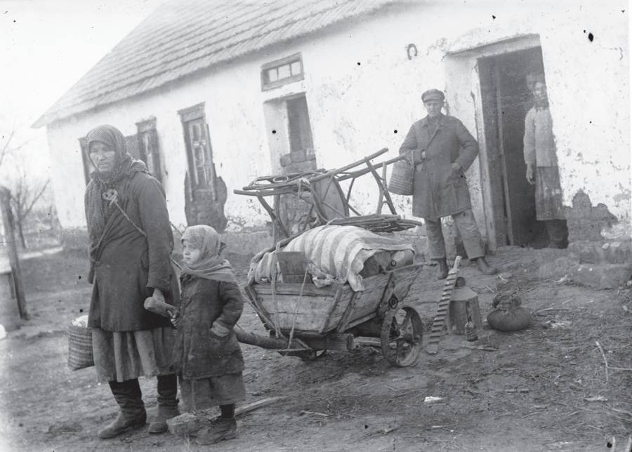 Madre e hija siendo desalojadas de su casa en Donetsk, 1932.