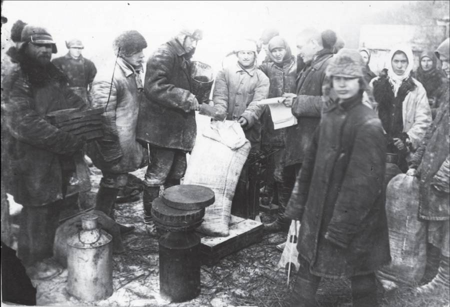 Los ucranianos debían hacer largas filas para obtener algo de alimento que el gobierno soviético repartía. Lamentablemente, las porciones no alcanzaban para mantenerse había quienes robaban los alimentos por lo que muchas personas se quedaban sin absolutamente ningún bocado.