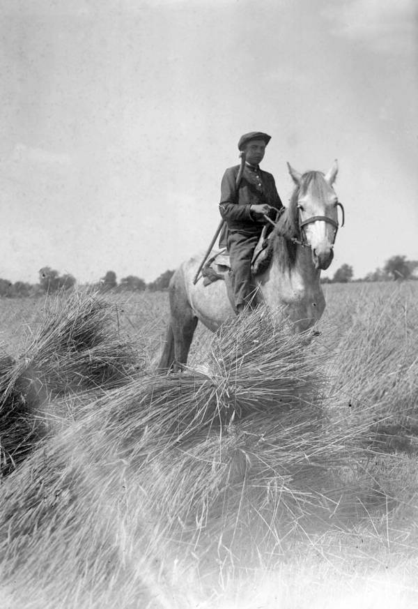 Hombre cosechando en la granja “Estrella Roja” en Poltava, controlada por el gobierno, 1932.