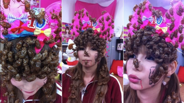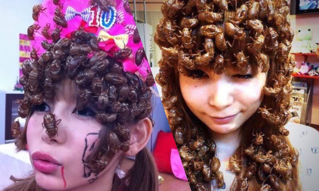 Shokotan es el apodo de Shiyoko Nakagawa, una artista japonesa de múltiples talentos con su propio estilo extraño para el peinado y el estilo. Aunque nadie se atreve a cuestionar la idea de “a cada uno lo suyo”, la afición de esta chica por llevar cigarras sin vida en el cabello o incluso usarlas a veces como un sombrero, deja algo para cuestionar al menos si no se desea.