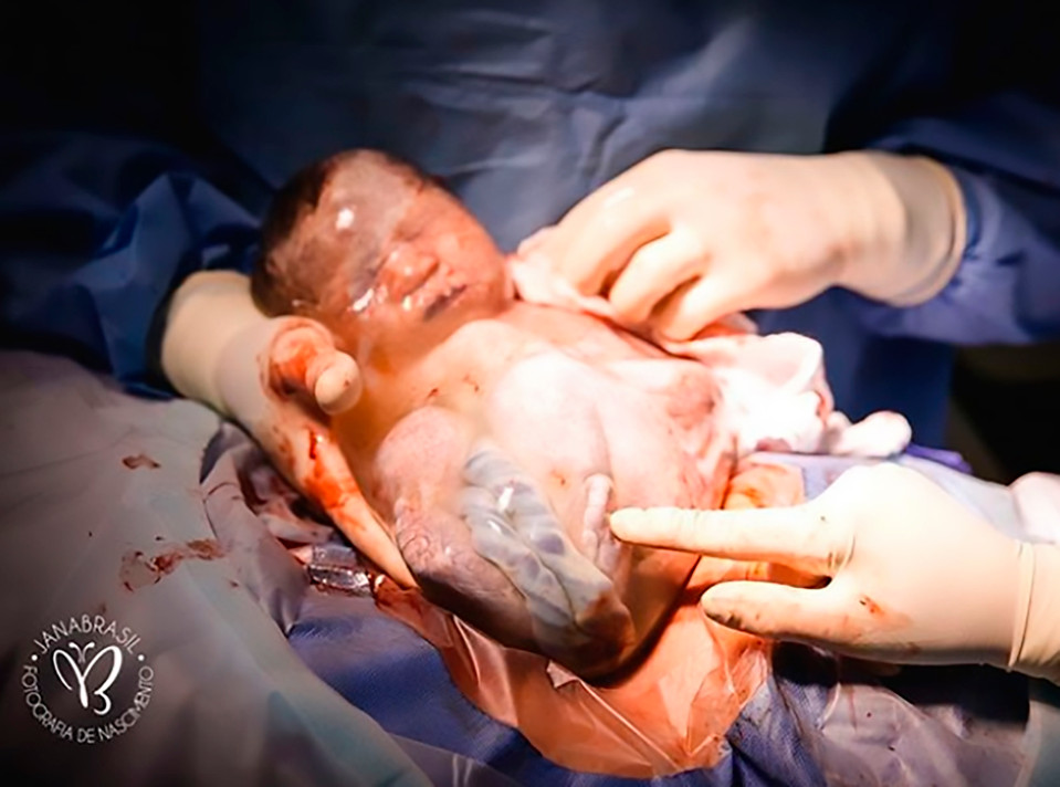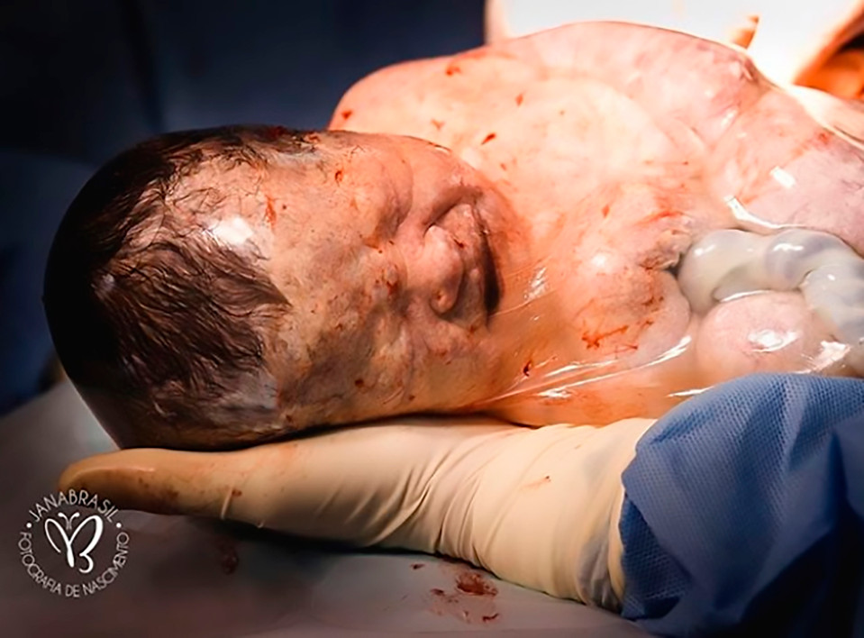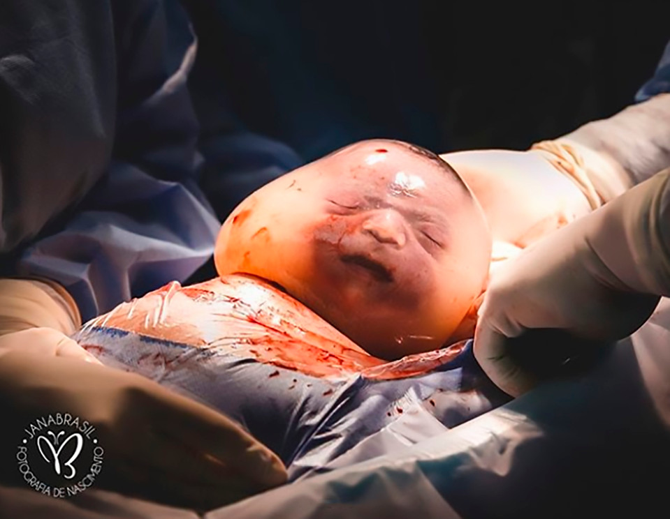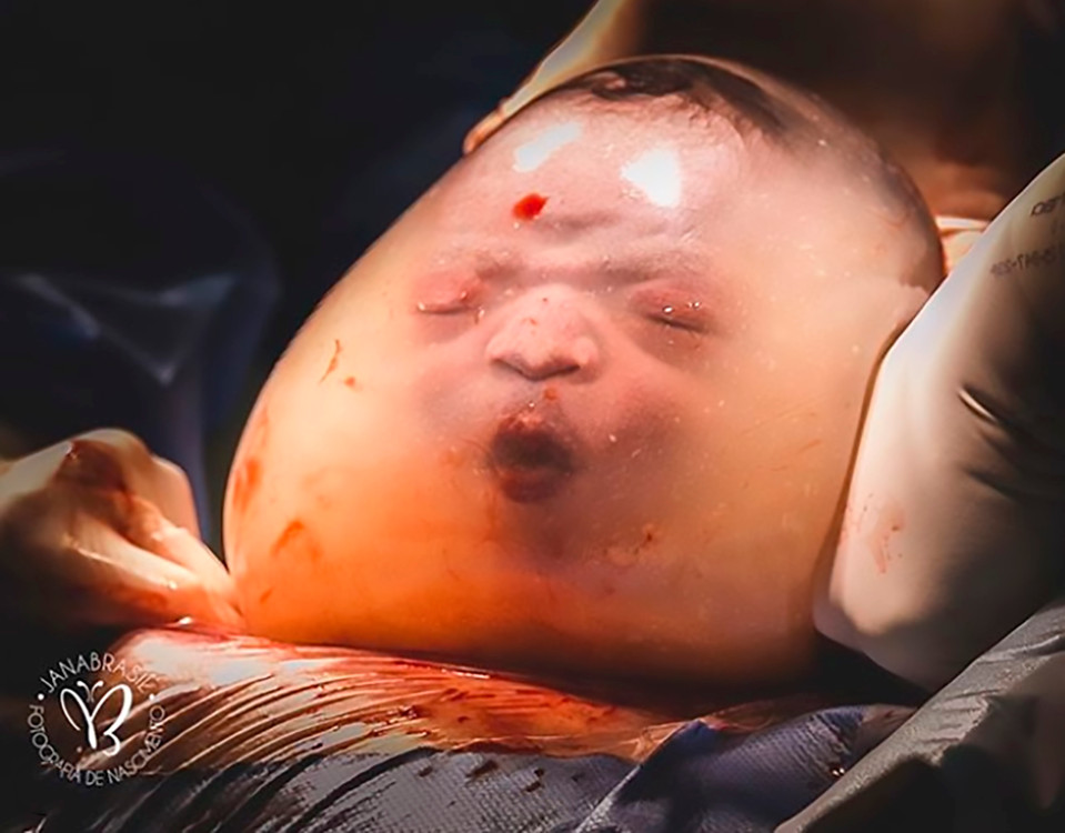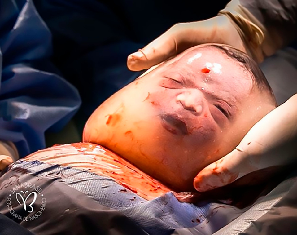 Cuando dio a luz al bebé Noah en el Hospital Praia da Costa en la ciudad brasileña de Vila Velha, la fotógrafa Jana Brasil capturó el raro pero hermoso momento.