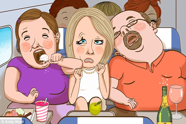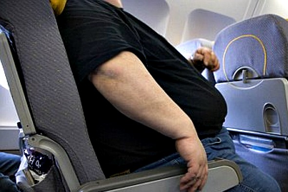 “Además el hecho de que no pude bajar mi mesa correctamente para comer porque la parte superior de sus piernas y el estómago salieron e interfirieron con mi espacio”.